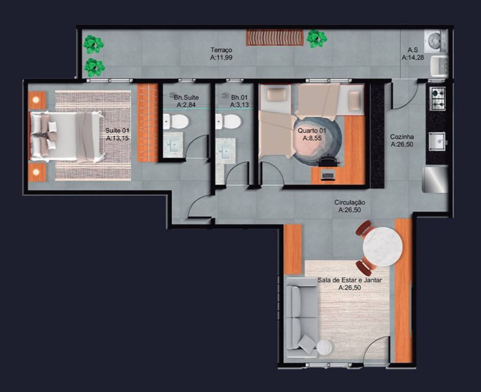 a m b o s p o s s u e m 0 2 s u í t e s c o m v a r a n d a ,