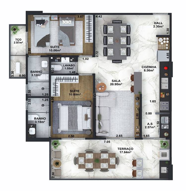 Área Útil92,32m²