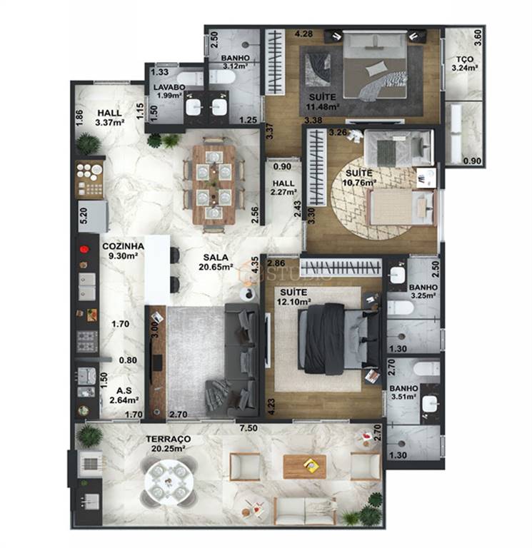 Área Útil118,34m²