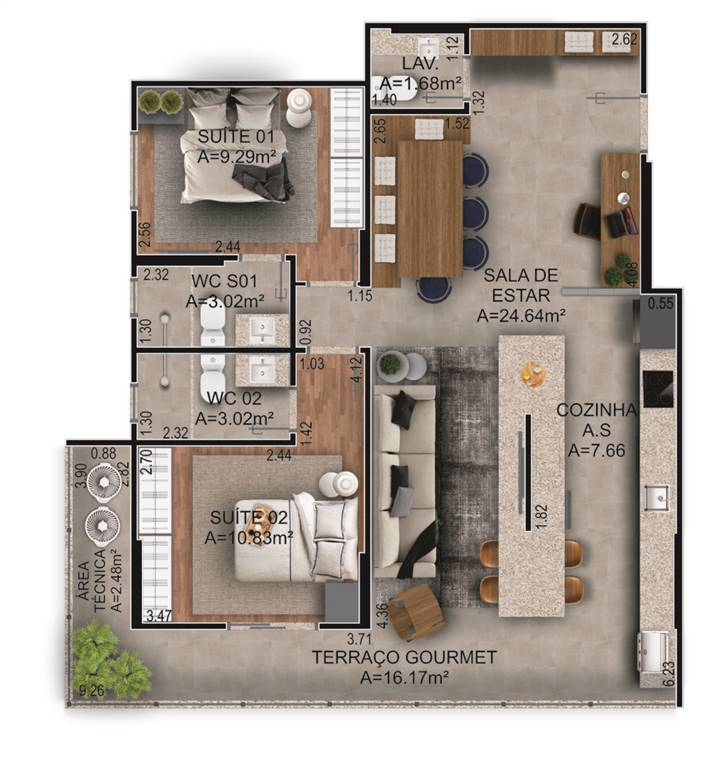 Área Útil87,61m²