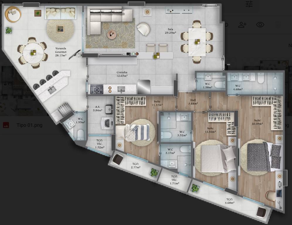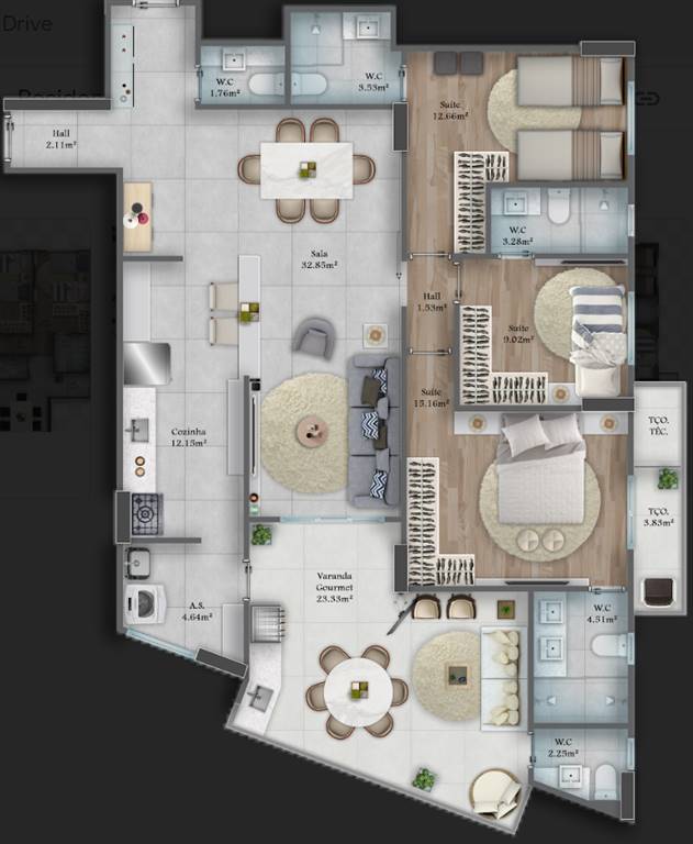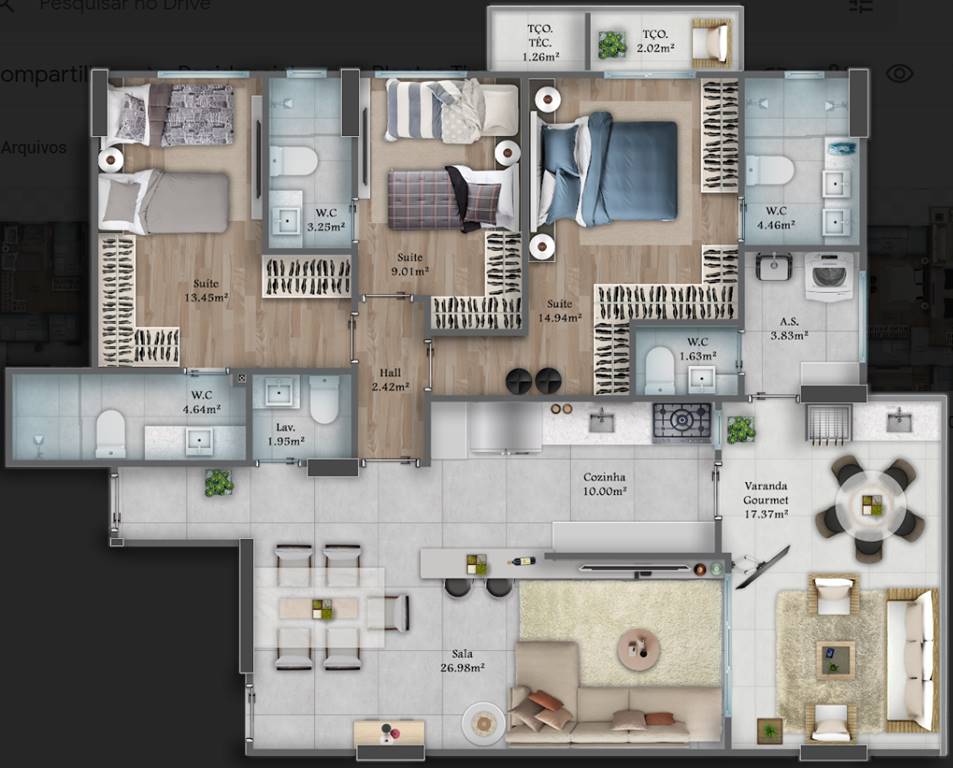 Área Útil125,57m²