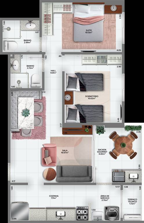 Área Útil70,01m²