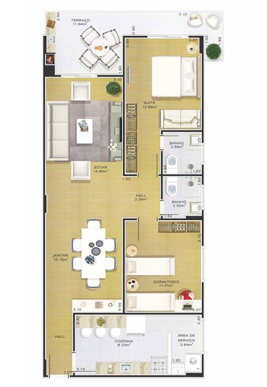 Área Útil118,63m²